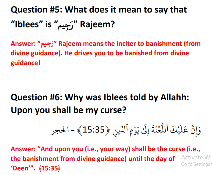 He (Iblees) said: “Grant me a stay until the day they are revivified (when they become alive engaging the scripture)!” (7:14)