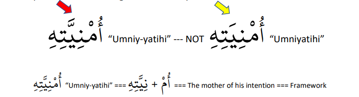 কিন্তু এখানে ব্যবহৃত শব্দটি সাধারণ umniyatihi নয়। বরং: