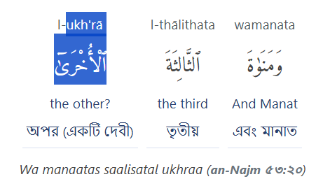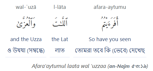 Note: * মিল্লাত ইব্রাহীম (the compositional style of Ibrahim) হল ভাষাগত বিচক্ষণতার রচনাশৈলী যা তাকে আল্লাহ শিখিয়েছেন